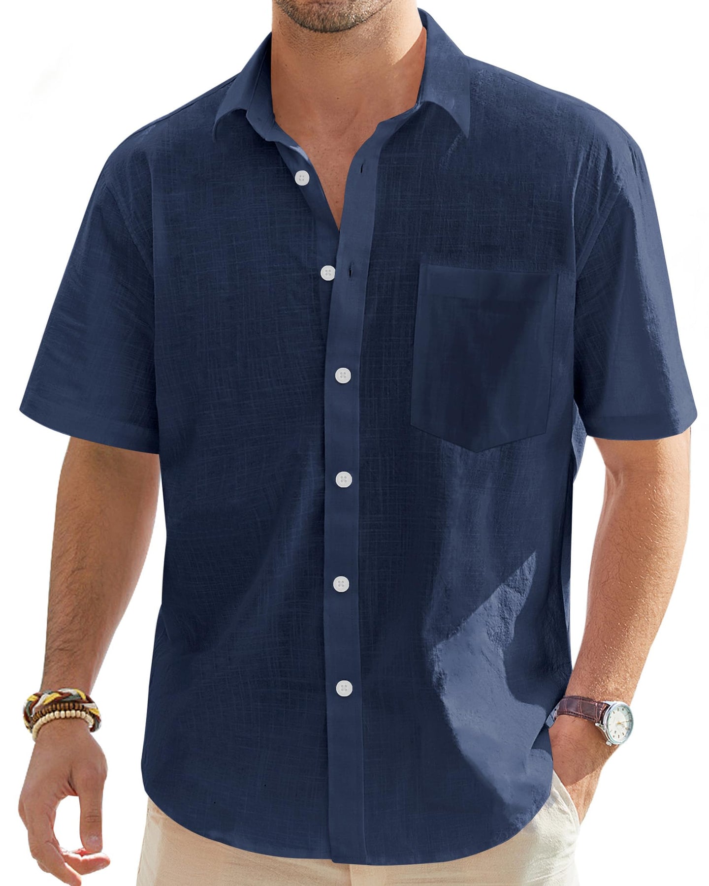 Step into effortless comfort and style with our J.VER Men's Cotton Linen Short Sleeve Shirts