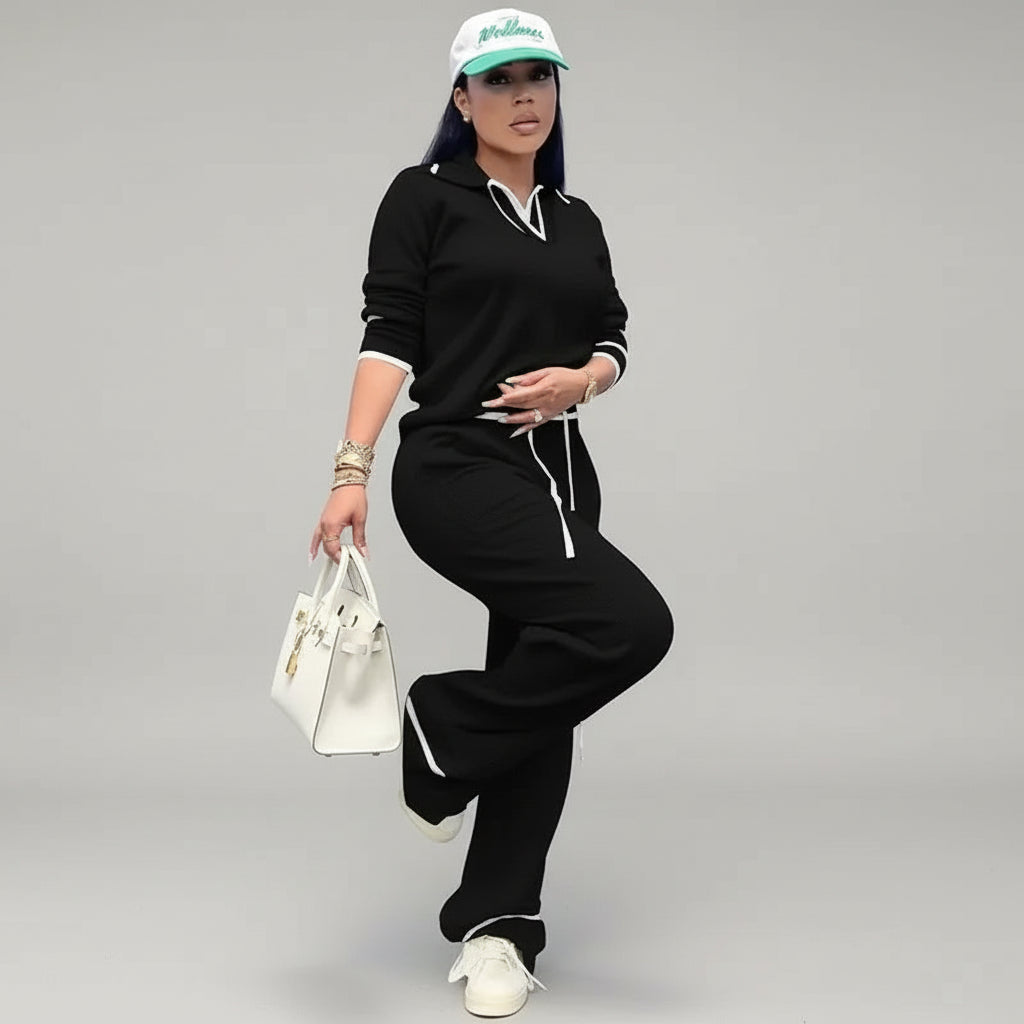 Stay effortlessly stylish with this striped sweater top and matching wide-leg jogging pants set. Designed for comfort and elegance, this outfit is perfect for casual days, travel, or light workouts.
